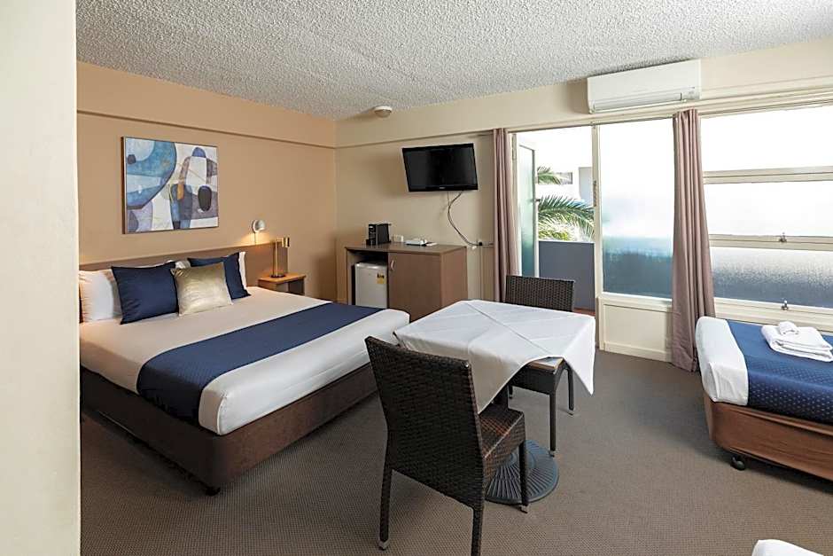 This air-conditioned room offers a flat-screen TV, desk, fridge, tea/ coffee facilities, safe, iron and ironing board. The room has 1 queen bed and 1 single bed.